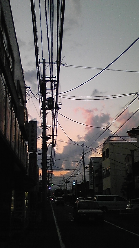 なんか足りない気もするけど、とりあえず以上を踏まえると、ゲーム開始当初考えていたタマたちがいる世界さえも現実ではなく、すべては三枝睦月の夢の中の出来事だったということになります。な、なんだってー!? いや、僕も脳科学とかには詳しくないんでこんなんたった一人の脳みそん中でできるもんんなのかとかわからないんですが、正直無理だとは思います。でもたぶんガラスケースから延びたケーブルの先とかがバックアップとかを行っていて可能にしてるんだよ、うん。まあたぶんここは気にしたら負けとか言われるレベルの設定だと思います。睦月ちゃんが崩壊した物理法則を味方につけたのか、もしくはそもそもそんなことは関係なく彼女の勝手な改ざんなのかわかりませんが、冬木さん達が「月の街」の要素が現実(と思っている)世界に漏れ出すことがイコール物理法則の崩壊だと思い込んでいるのも実際には間違いで、厳密に言えば睦月に保存されている現実世界の記憶が彼女自身の夢の影響により改ざんされてしまうことを避けているということになると思います。まあ、どちらにせよ現実の記憶を守ろうとしていることには変わらないので、彼らにとってはこの程度は些細なことなんでしょう。守るべきものによって浸食されているなんてのは知らない方が幸せでしょうし。しかしこの構図に気づいてしまった主人公は、彼の現実が何を守ることで確保されるかを知り、睦月を傍で守ることにしたんでしょうね。睦月は睦月で自分の夢への親和性の高かった主人公を個人の夢の存在に書き換えることで自らの孤独を癒したかったとか、たぶんそんな感じ。だから個人的には主人公と睦月の間に元々の血縁関係はなかったと予想してます。 しかしここまで考えても作品を通したテーマとか結論は見つかりませんでした。まあ元々の始り方が堀部さんの描いた一枚のイラストからイメージを膨らめていったというものですから、単純な娯楽作品として作られてるのかもしれません。もし仮にテーマらしきものがあったとしても、肝心要の三枝睦月、パンドラ計画に関する情報の決定的不足、ライターの癖(=曖昧にしておくのが好き)からして本当に雰囲気だけの可能性、などの問題から作品単体から導き出すのはほぼ不可能かと思います。てか、ぶっちゃけこれ以上タマとか泉美さんみたいな頭のネジがトんでるような連中に付き合えません。俺の脳みその物理法則が崩壊しちゃいます。そんなわけで僕の中における「インタールード」はこれまでで一応決着ということにしておきます。 ↓の評価ボタンを押してランキングをチェック! ![]() 今回は自店の前から見た西の空の夕焼け。一昨日くらいに酷い大雨が過ぎ去った後に見られた光景。個人的には夕日自体よりも、それが沈みゆく様をじんわりと感じられる淡く染まった雲の穏やかな移り変わりとかが好きです。この写真の光景も数分後には既に色褪せたものに変わってしまいましたが、そういった儚いが故の尊さというのはいつ目にしても心を奪われてしまいます。いつか自分の作品でもそんなものが作れたらなーと思いつつ早幾年月…。こんな素敵な夕闇時だって毎日生まれては消えていくなんて勿体ないことばんばん繰り返しているんだから、自分だって一生に一度くらいはそんな光景を描いてみたいです。 あ、あと、話は変わりますが、昨夜1年越しにPS2版「インタールード」をクリアしました。が、衝撃の真EDを拝んでからというもの、どうも気持ちが落ち着かないというか、自分の中での物語の落とし所が定まらないというか、そんな状態が続いてまして。いろいろネットでレビューとか考察に目を通してみたんですが、どうも片手落ちの作品だったようで(というか、そもそもライターがそういう曖昧にしておくのが好きらしい)。おかげで余計に納まりがつかなくなってしまって、四六時中インタールードのことを考えてしまってます。答えが気になりだしたら止まらないのは悪い癖ですが、なんとか数日中にカタを付けて、次に待ち構えている「アマガミ」に取り掛かりたいです。運良く考えがまとまったら、ともするとここでうん蓄を垂れるかもしれませんが、そのときは適度に冷静な目で見つめてやってください。それが僕の励みになります(客観的になれるという意味で、決してMではないです)。